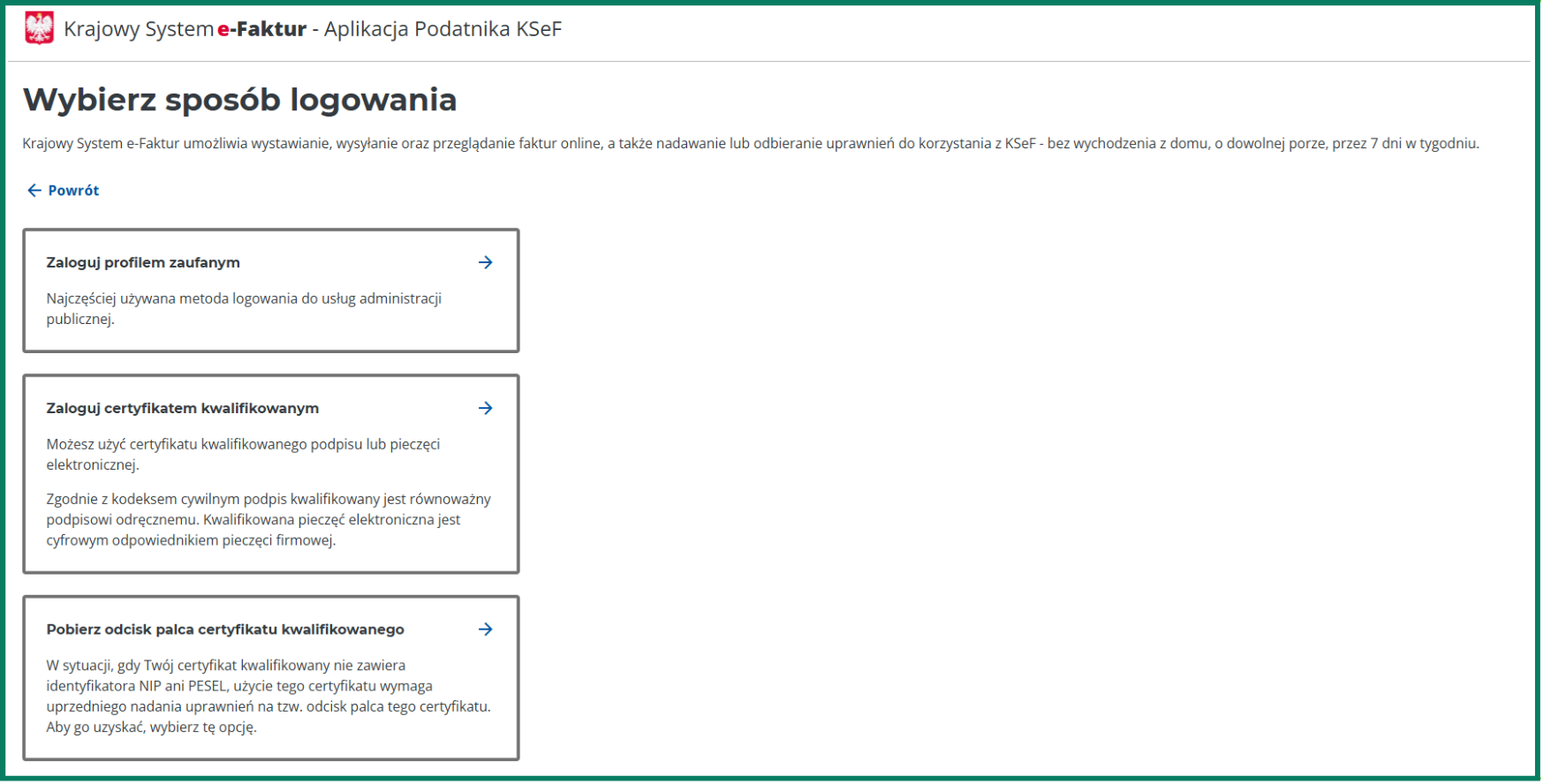 Wybierz Uwierzytelnij się w Krajowym Systemie e-Faktur.
