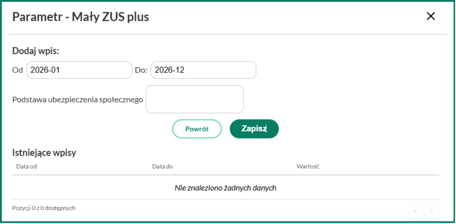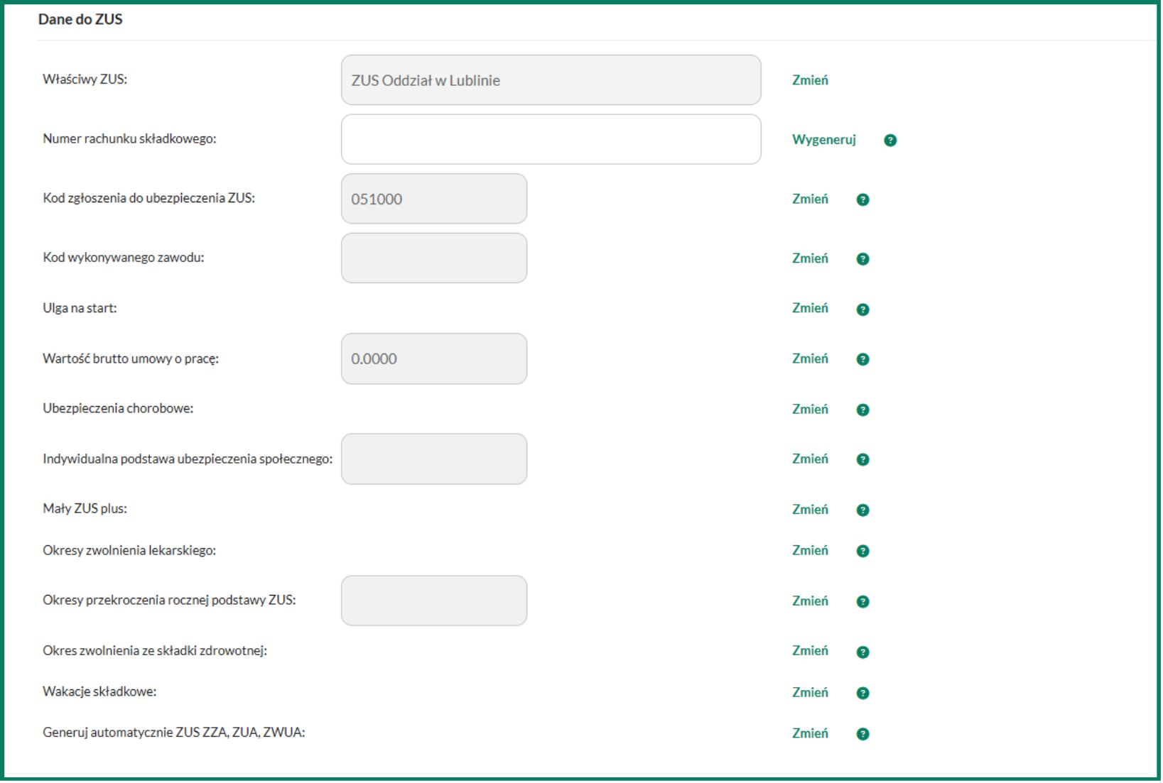 Dodatkowo, w systemie nie ma możliwości zmiany stopy składki na ubezpieczenie wypadkowe.
