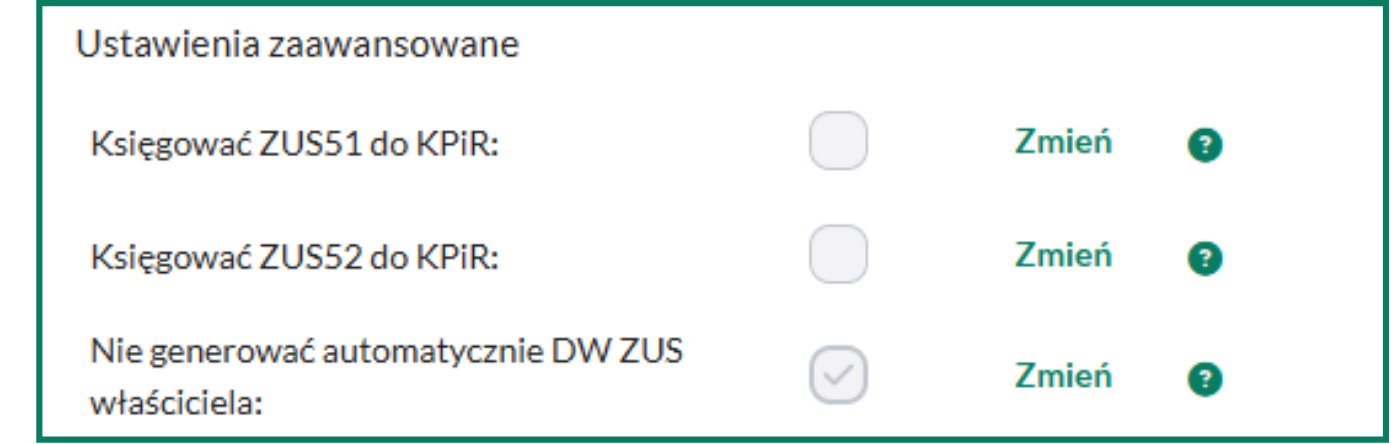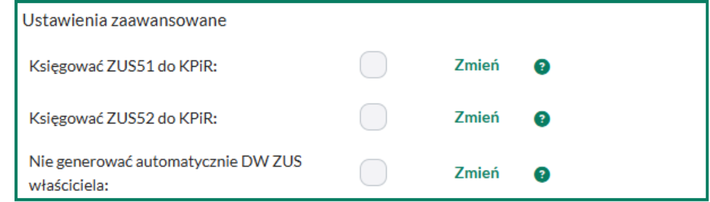 W przypadku gdy opłacany jest Mały ZUS plus należy kliknąć przycisk Zmień przy parametrze Mały ZUS plus.
