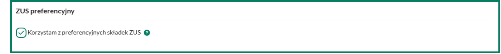 W przypadku gdy opłacane są składki preferencyjne należy zaznaczyć parametr Korzystam z preferencyjnych składek ZUS dostępny w zakładce Ustawienia/Właściciel.