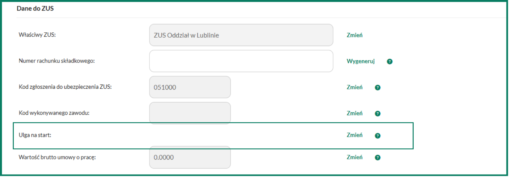 Jeśli korzystasz z ulgi na start należy uzupełnić parametr Ulga na start.