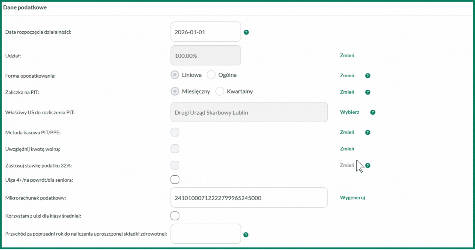 3. Użytkownik jest ryczałtowcem/opodatkowany kartą podatkową/opodatkowany podatkiem liniowym.