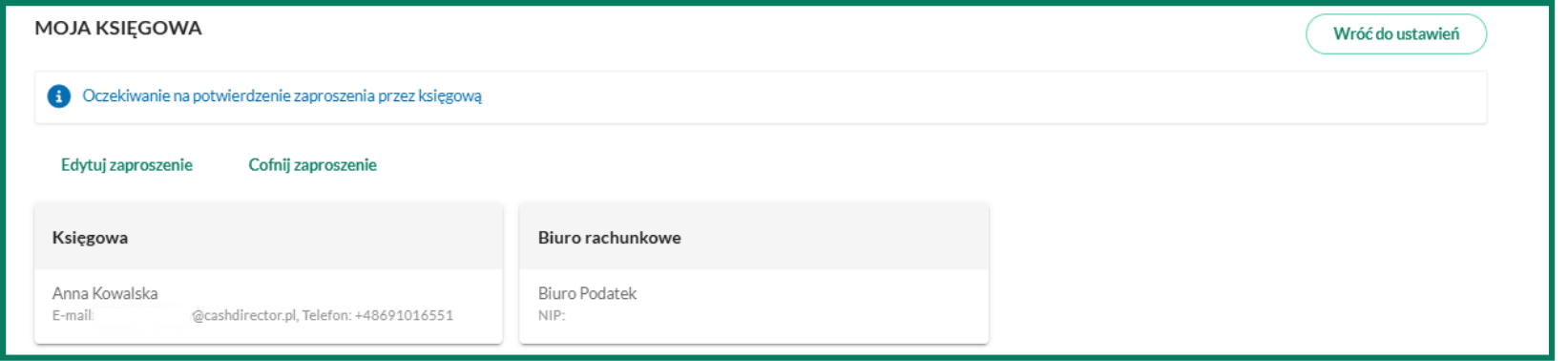 Wyświetli się wówczas informacja odnośnie nazwy Biura rachunkowego oraz bezpośredniego kontaktu do księgowej/ego.