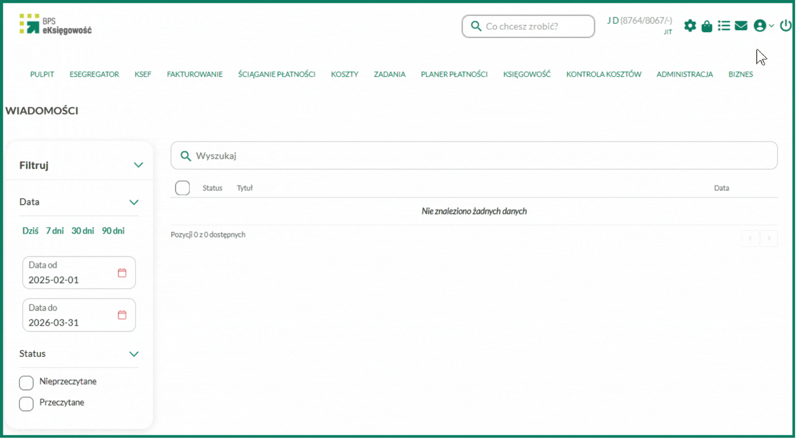 Wiadomości, które generowane są automatycznie przez program, w BPS eKsięgowość znajdują się w prawym górnym rogu po kliknięciu w ikonę koperty.