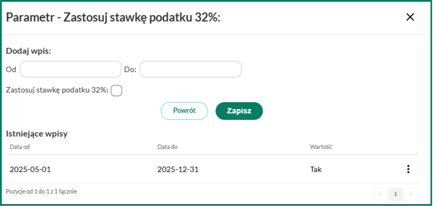 Po uzupełnieniu parametru, będziesz mógł wcześniej zacząć naliczenie i odprowadzenie podatku według wyższej stawki, a kwota podatku będzie wykazana w zaliczce na podatek w pozycji Podatek 32%..