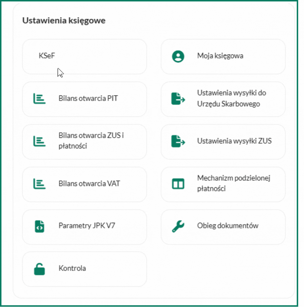 W celu wprowadzanie ustawień dotyczących KSeF przejdź do sekcji Ustawienia/Ustawienia księgowe/KSeF.