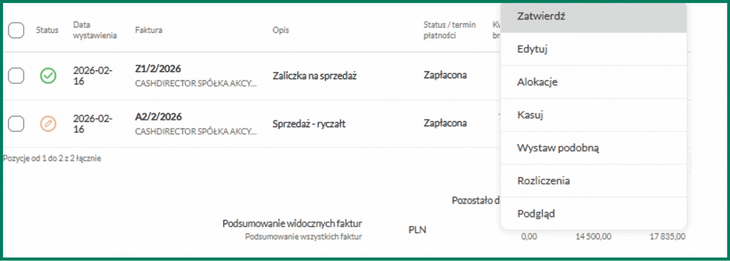 Po weryfikacji poprawności faktury możesz ją zaksięgować, korzystając z przycisku Zatwierdź