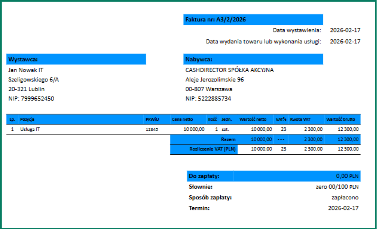 Po zapisaniu zmian kod będzie widoczny na wydruku faktury.