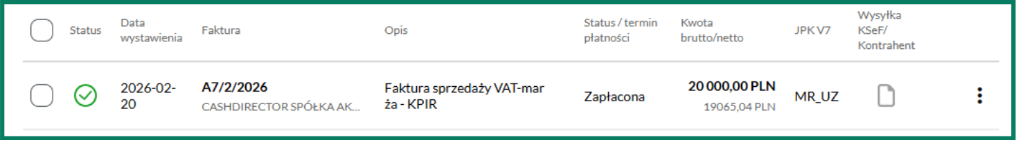 Aby zaksięgować na zasadach VAT marży dokument sprzedażowy: