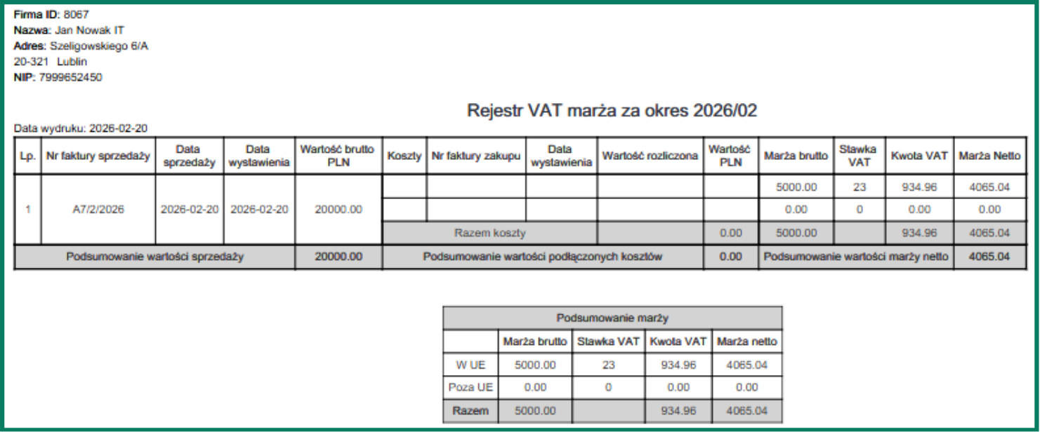System umożliwia księgowanie zakupu i sprzedaży na zasadach VAT marża.
