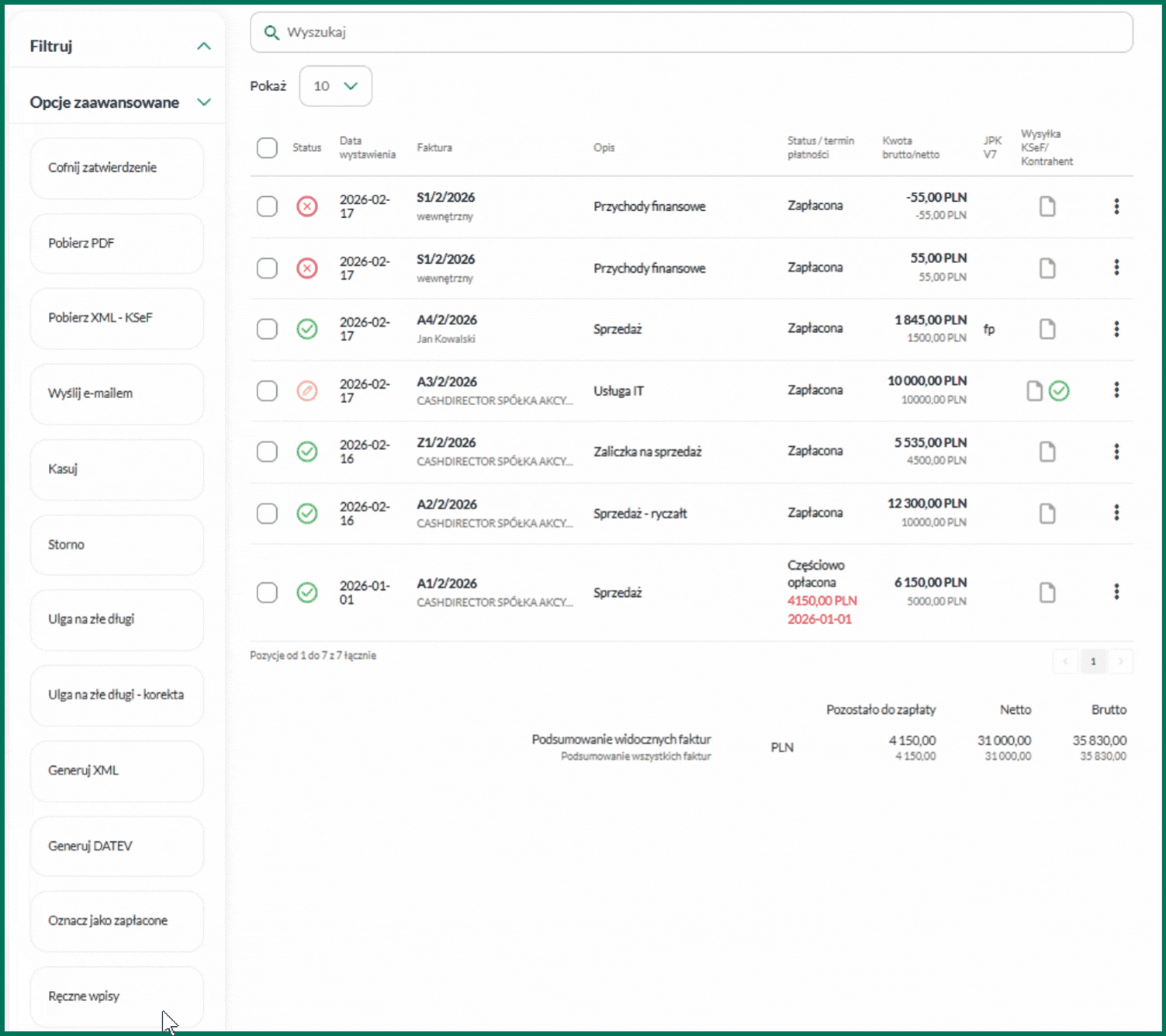 7. Po zapisaniu zmian dokument zostanie zaksięgowany.