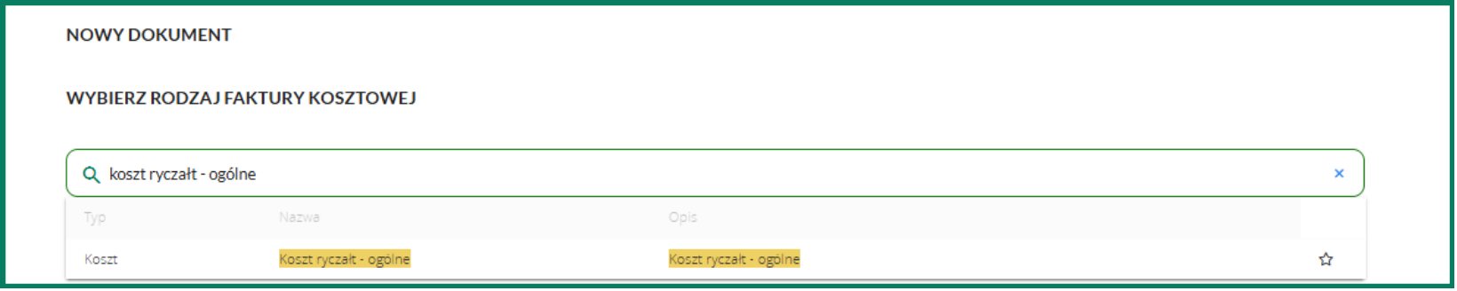 • wybierz odpowiedni szablon kosztowy w zależności od rodzaju transakcji, której dotyczy dokument.