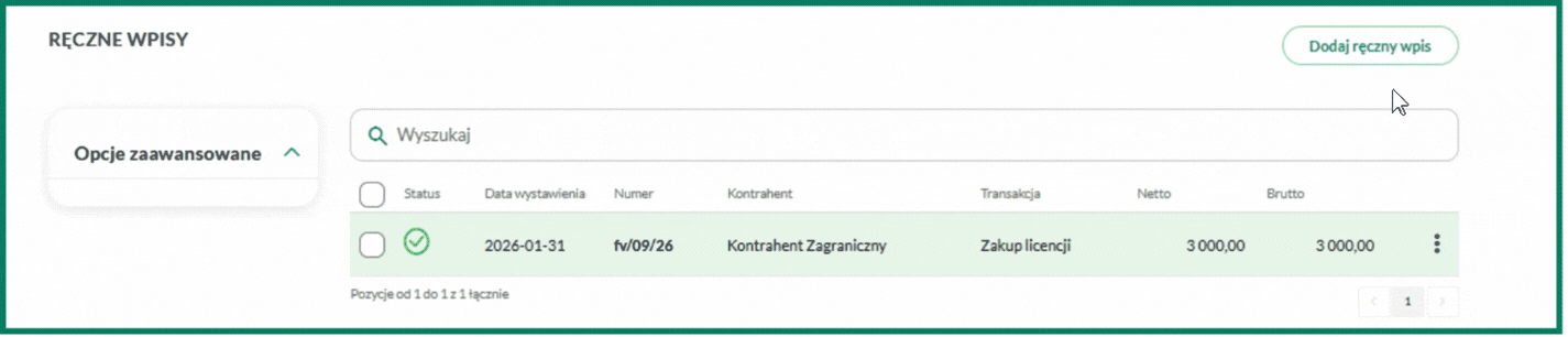 2. Kliknij w przycisk Dodaj ręczny wpis.