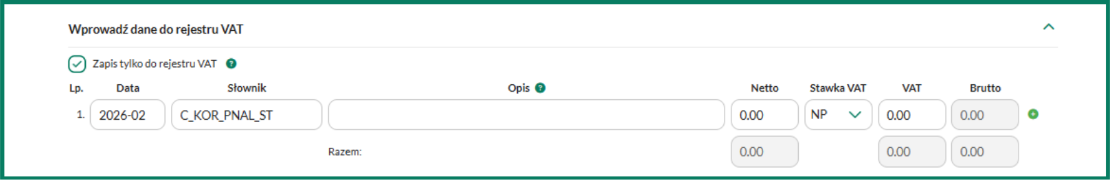 • w polu Netto wpisz 0,00,