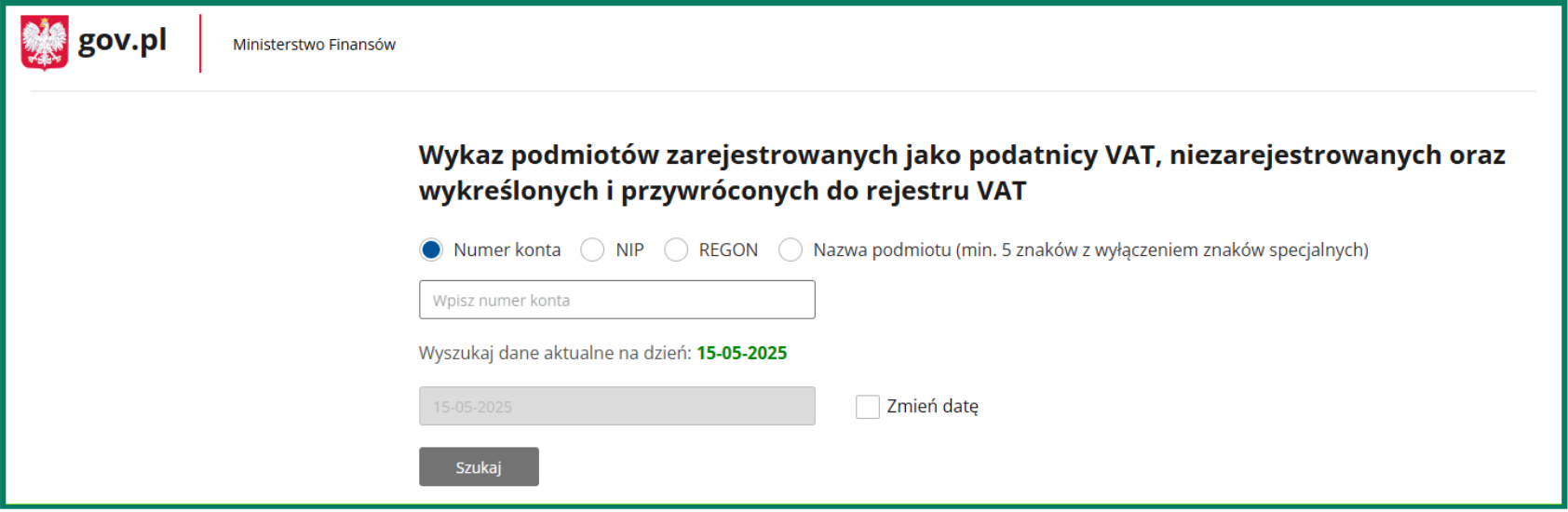 Biała lista podatników VAT jest dostępna na stronie internetowej Ministerstwa Finansów.