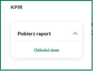 Zestawienie KPiR narastająco od początku roku znajdziesz w zakładce Księgowość/KPiR — wybierz kafelek Pobierz raport, aby je wygenerować: