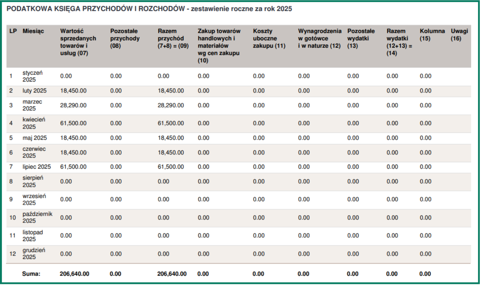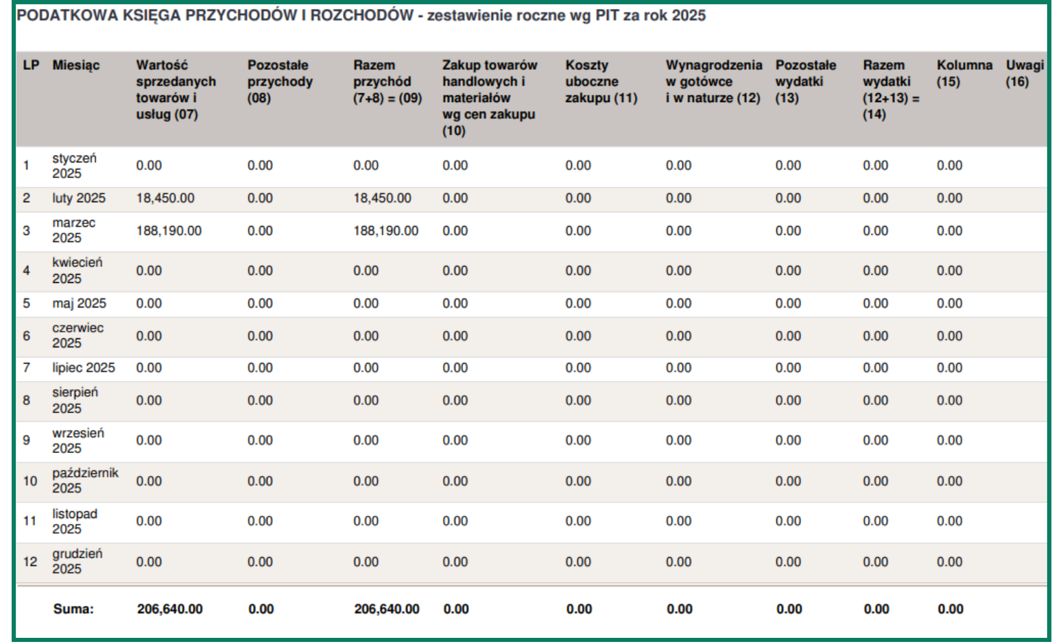 Po wyświetleniu dostępnych raportów wybierz KPiR - Zestawienie roczne wg PIT lub KPiR - Zestawienie roczne: