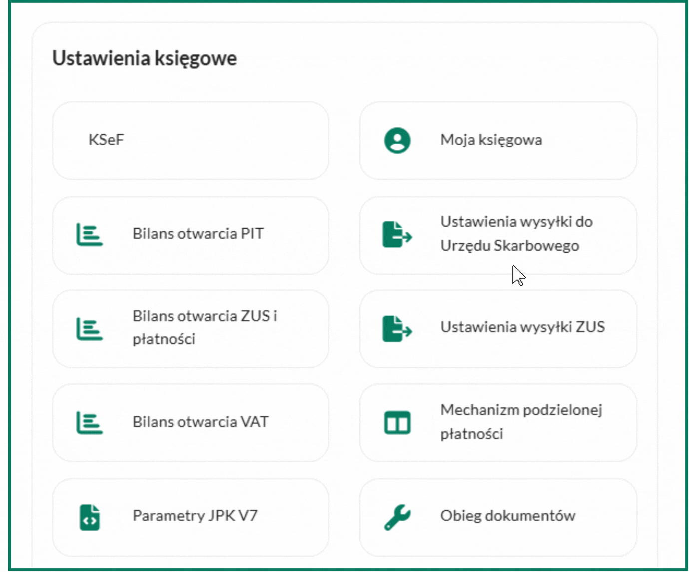 1. Przejdź do zakładki Ustawienia/Ustawienia wysyłki do Urzędu Skarbowego.