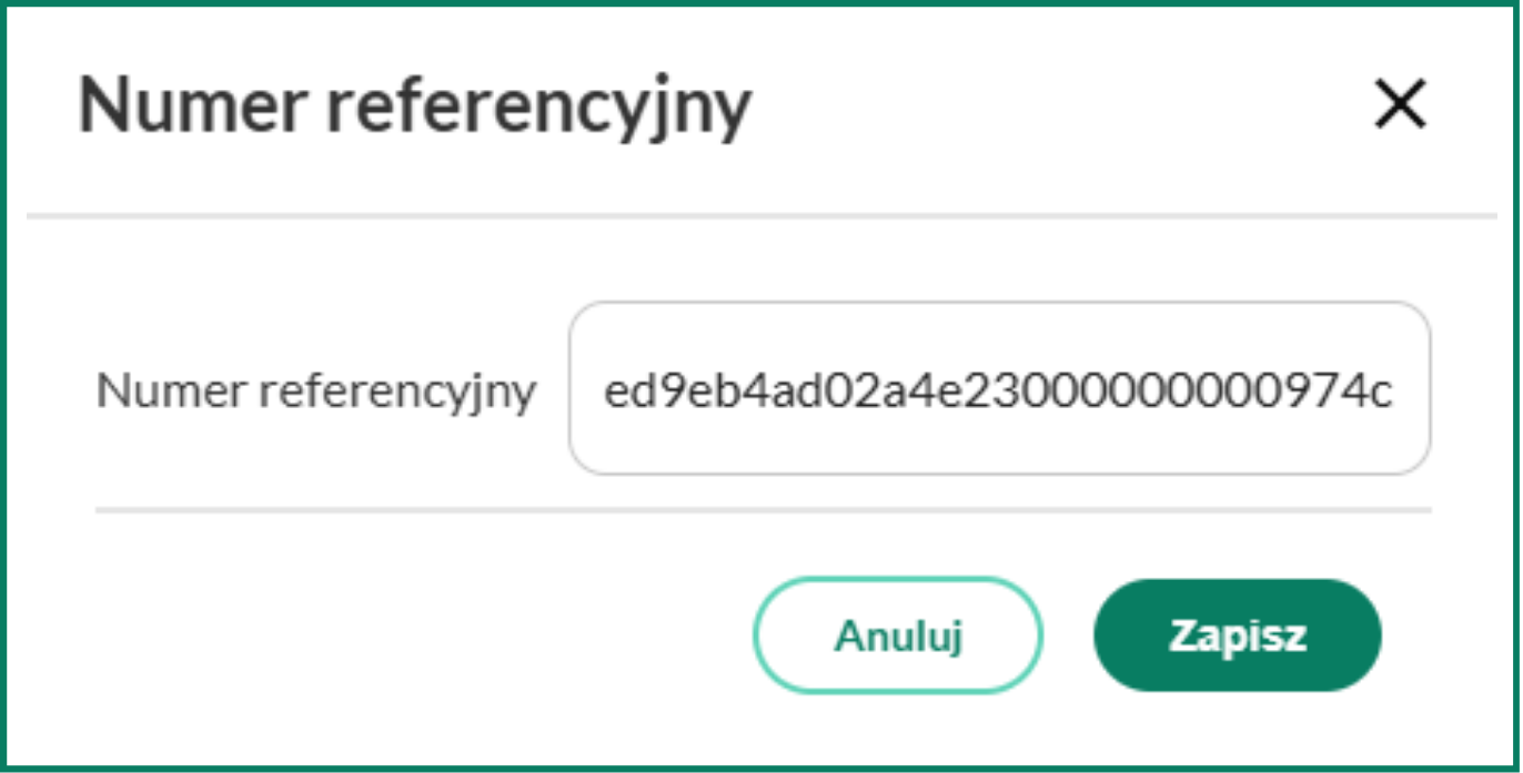 3. Po wyświetleniu się dodatkowego okna skopiuj numer referencyjny i zamknij okno bez zapisywania.