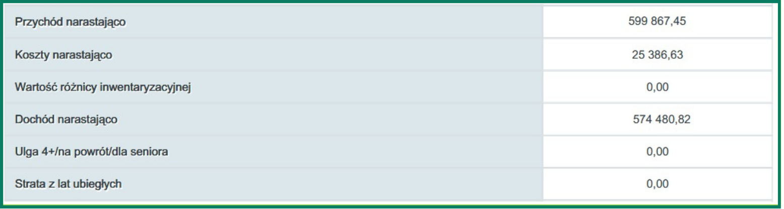 Wartość dochodu uzyskanego w ciągu roku możesz sprawdzić w deklaracji PIT za grudzień lub IV kwartał — w polu Dochód narastająco: