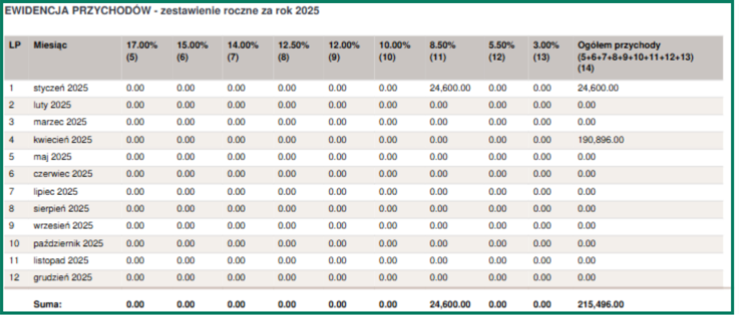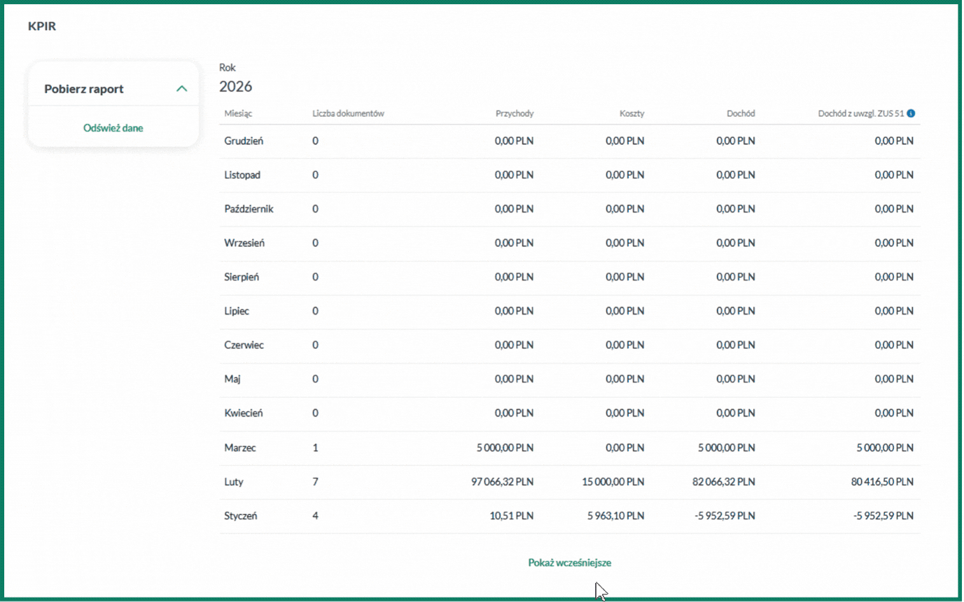 Po kliknięciu w przycisk Pokaż wcześniejsze system wyświetli przychody z lat ubiegłych.
