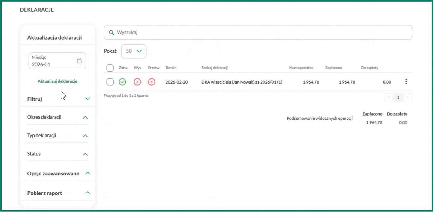 3. Po zatwierdzeniu deklaracji możesz Pobrać xml lub pobrać dokument przez opcję Drukuj w formacie PDF.