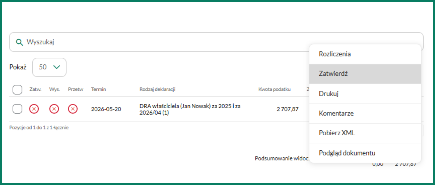 2. Po sprawdzeniu poprawności możesz zatwierdź DRA.