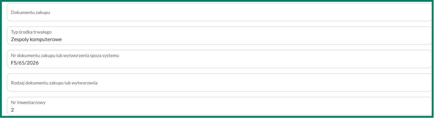 • Rodzaj - środek trwały, wyposażenie, wartości niematerialne i prawne;