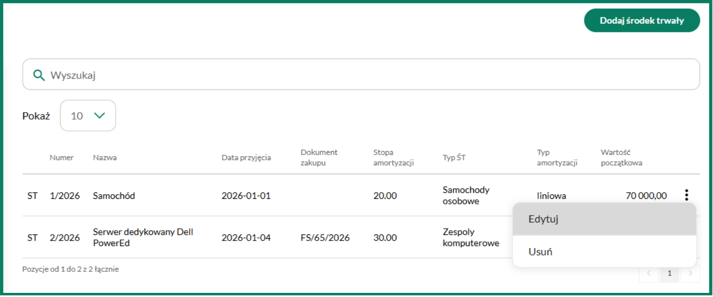 W Systemie możesz edytować wcześniej wprowadzony środek trwały. Aby to zrobić:
