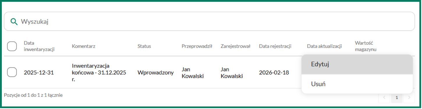1. Skieruj kursor na inwentaryzację ze statusem Wprowadzony i wybierz przycisk Edytuj: