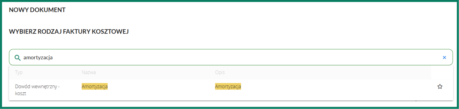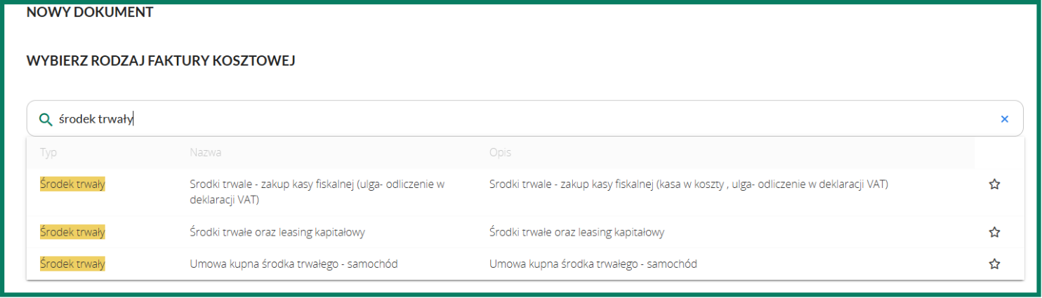1. Jeśli dodajesz wydatek z użyciem szablonu Środki trwałe oraz leasing kapitałowy, w zakładce Koszty/Faktury kosztowe automatycznie powstanie wpis do ewidencji środków trwałych.