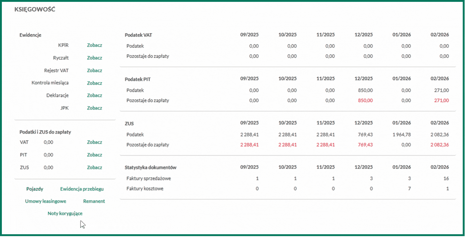Wystawione noty korygujące do faktur kosztowych znajdziesz w zakładce Księgowość/Podsumowanie/Noty korygujące: