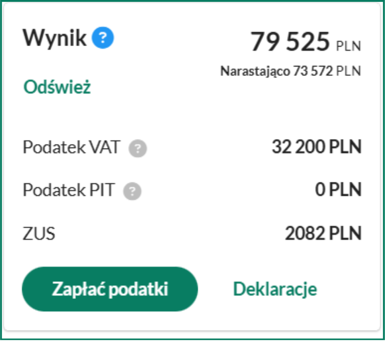 - Odśwież - powoduje ponowne przeliczenie wyniku oraz podatków do zapłaty;