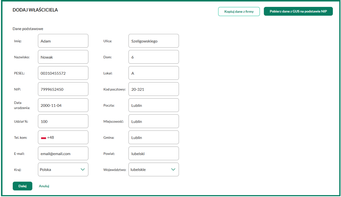 Dodaj właściciela/wspólnika